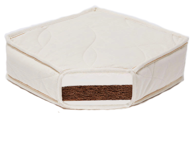 Матрас создан из тысяч волокон кокосового ореха, смешанных с натуральным латексом без использования формальдегидов, чтобы действовать как тысячи крошечных пружин, обеспечивая поддержку и уменьшая точки давления.